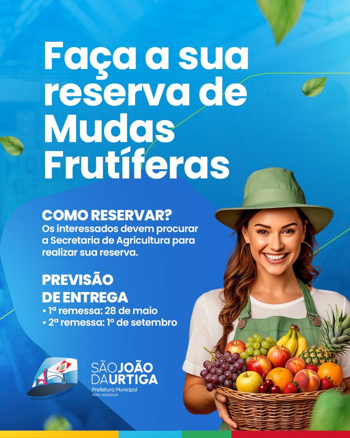 A Secretaria de Agricultura e Meio Ambiente de São João da Urtiga já está realizando reservas de mudas frutíferas provenientes de viveiros certificados, garantindo qualidade e procedência para quem deseja investir na produção.