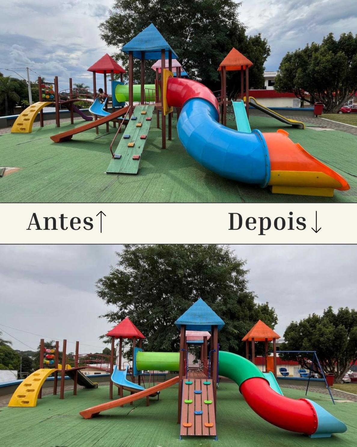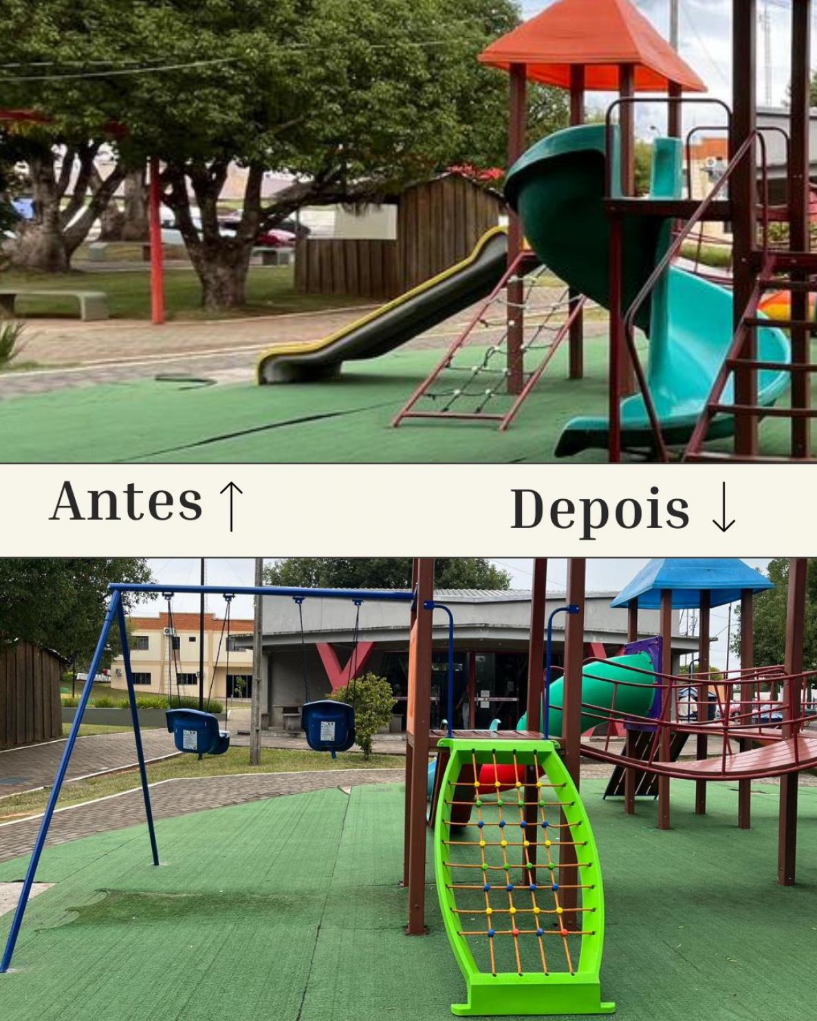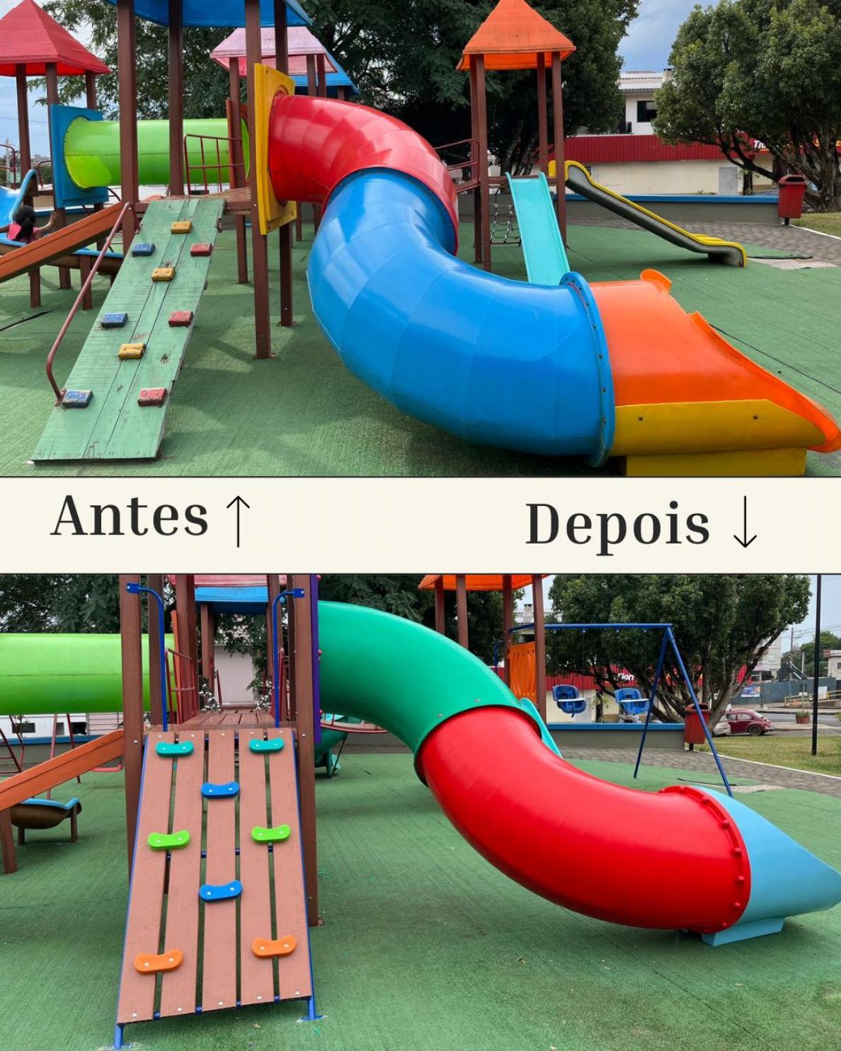 A revitalização do nosso parque infantil está pronta! Com o objetivo de garantir um ambiente seguro e moderno para o lazer das famílias, a Prefeitura realizou: