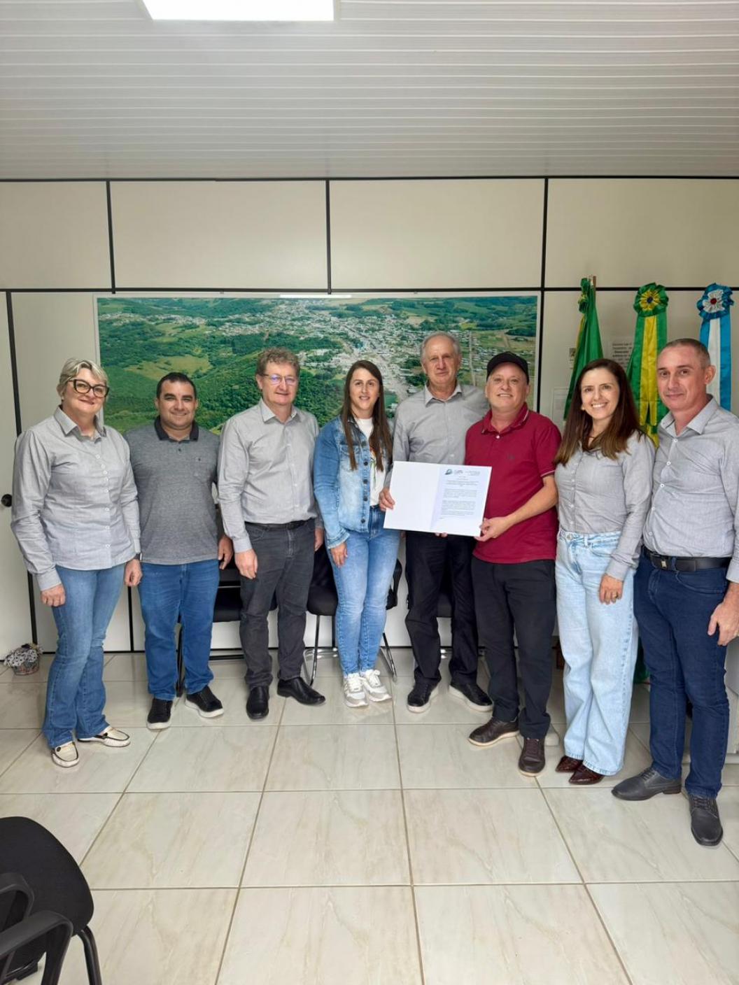 O encontro contou com a presença da diretoria da cooperativa, representada pelo presidente Mario Antônio Maurina, pela vice-presidente Madalena Miotto e pela conselheira Taniamar Gregolin Zanandrea. Também acompanharam o ato o gerente da agência local, Ronaldo Savi, e o analista de desenvolvimento do cooperativismo, Fabiano Dalcin, reforçando o laço entre a instituição e a nossa comunidade. 📈🏛️