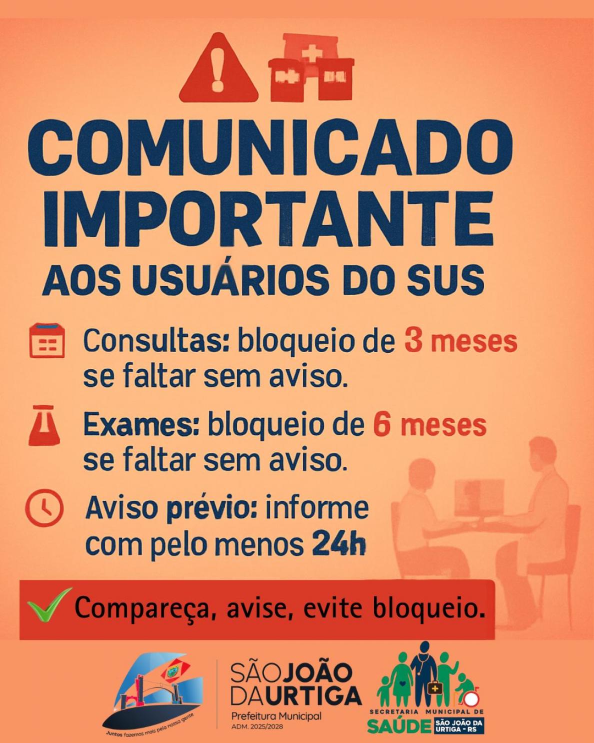 • Exames: quem faltar sem aviso será bloqueado por 6 meses e ficará impedido de solicitar novos exames.