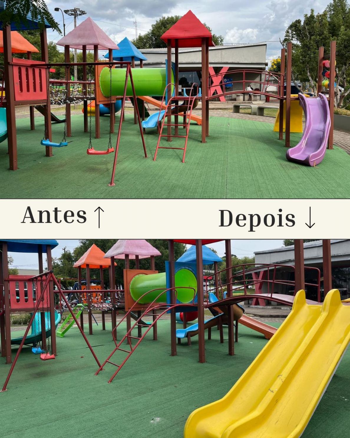 A revitalização do nosso parque infantil está pronta! Com o objetivo de garantir um ambiente seguro e moderno para o lazer das famílias, a Prefeitura realizou: