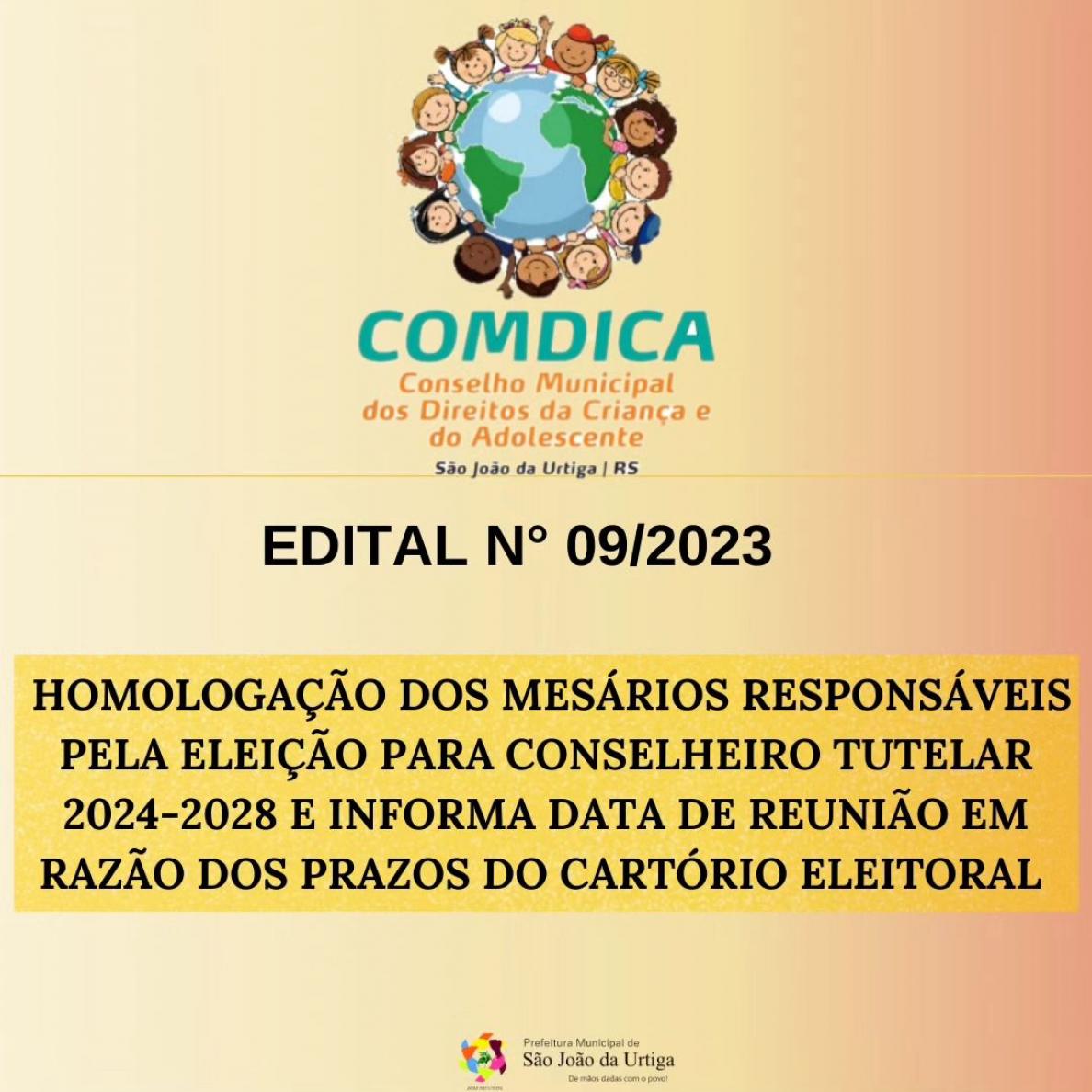 HOMOLOGAÇÃO DOS MESÁRIOS RESPONSÁVEIS PELA ELEIÇÃO PARA CONSELHEIRO TUTELAR 2024 - 2028 E CONVOCA REUNIÃOHOMOLOGAÇÃO DOS MESÁRIOS RESPONSÁVEIS PELA ELEIÇÃO PARA CONSELHEIRO TUTELAR 2024 - 2028 E CONVOCA REUNIÃO