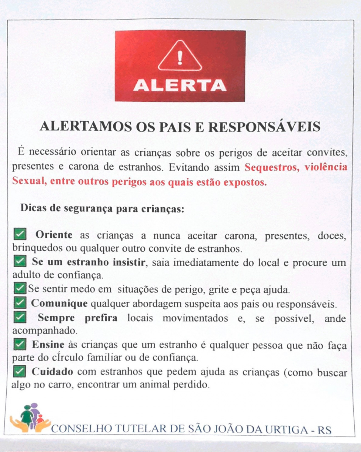 ALERTAMOS OS PAIS E RESPONSÁVEIS