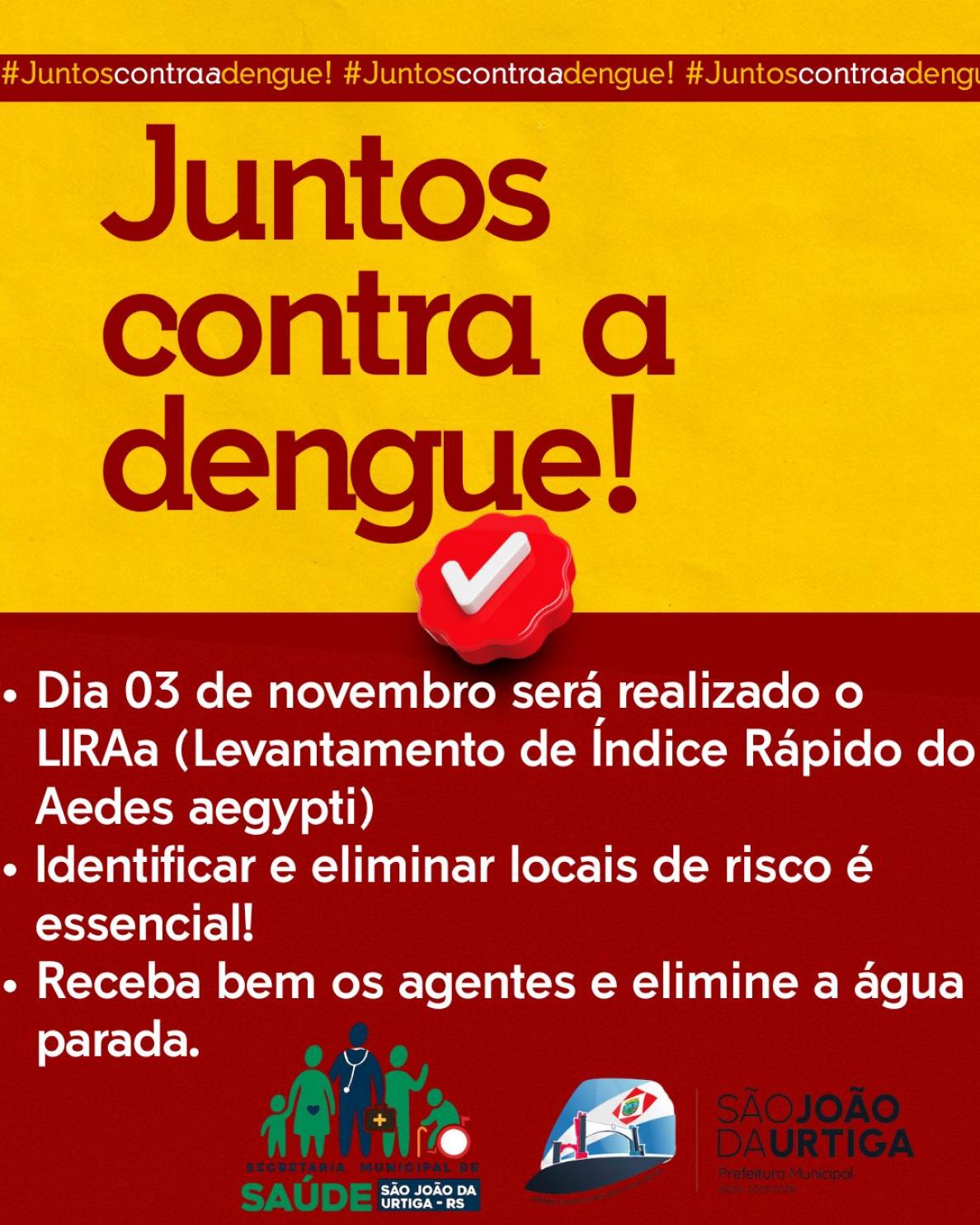 No dia 03 de novembro será realizado em nosso município o LIRAa – Levantamento de Índice Rápido do Aedes aegypti.