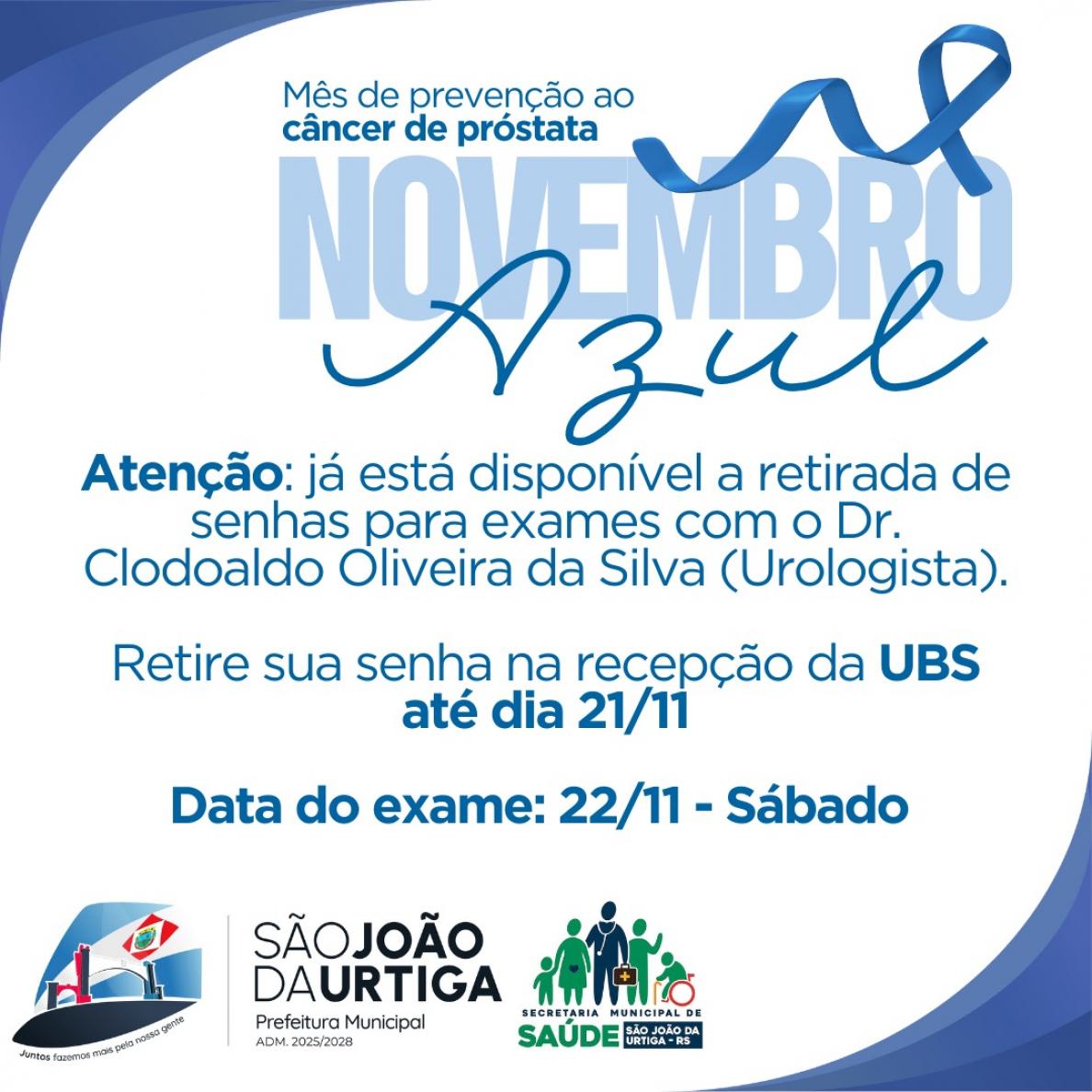 Já está disponível a retirada de senhas para exames com o Dr. Clodoaldo Oliveira da Silva (Urologista).
