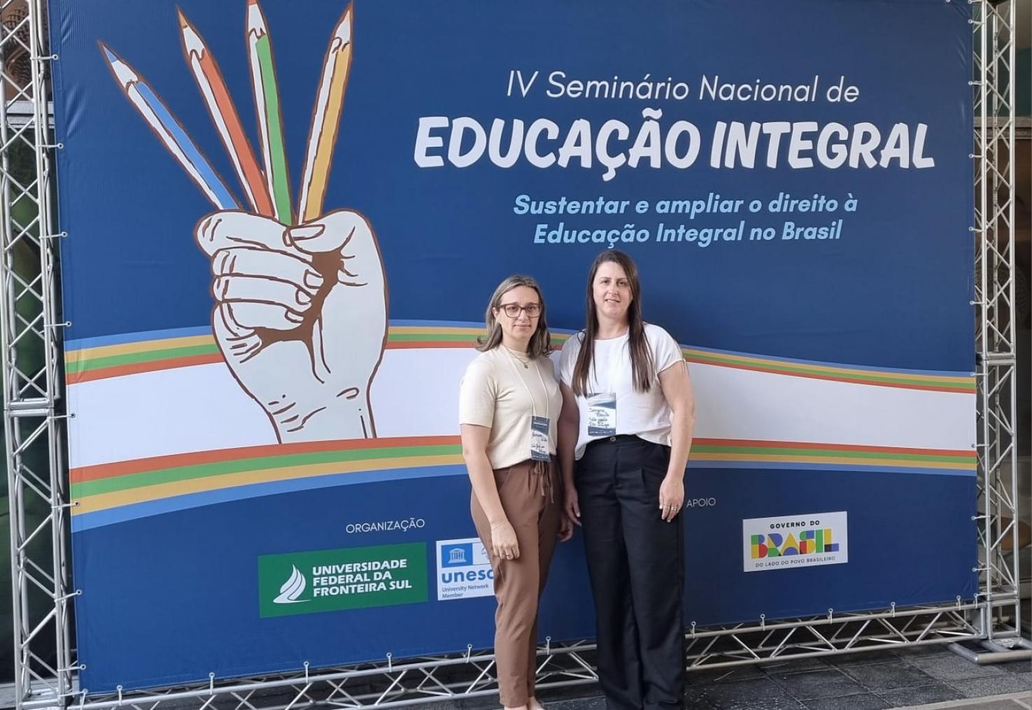 Representando o nosso município, participam do evento a Secretária de Educação e Cultura, Simone, e a Técnica de Apoio Pedagógico, Vanessa.