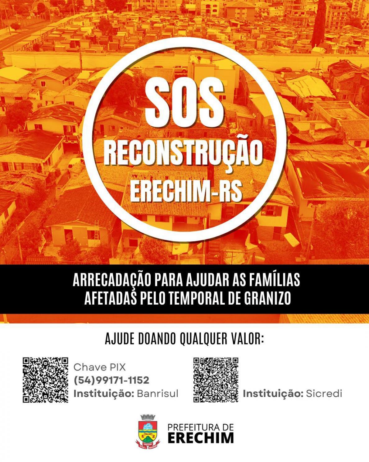 A Prefeitura de Erechim disponibilizou um PIX oficial para quem quiser contribuir e auxiliar as famílias que foram duramente atingidas pelo temporal de granizo.